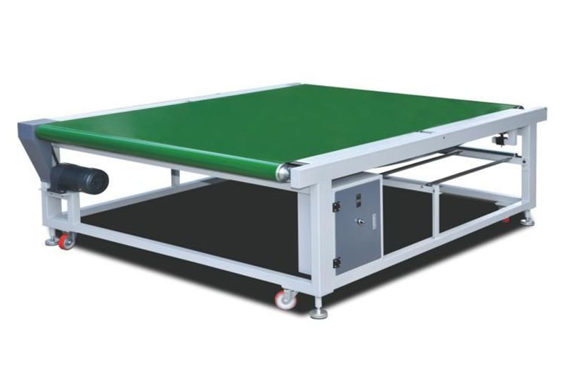 The motor driven conveyor belt rotates in a circular, continuous manner so that materials are smoothly moved from one end to the other. The conveying length and the belt width can both be customized according to production requirements.
